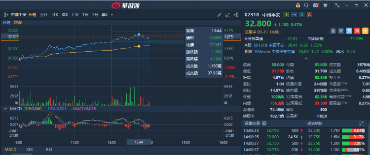 内险股全线走高,截至发稿,中国平安(02318)涨3.47%,报32.80港元;中国太平(00966)涨3.38%,报6.43港元;新华保险(01336)涨3.14%,报14.46港元;中国人寿(02628)涨3.03%,报9.19港元;众安在线(06060)涨1.93%,报16.88港元。