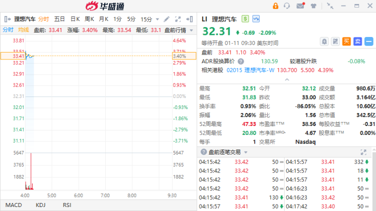 中概股盘前多数上扬,截至发稿,理想汽车、叮咚买菜、小鹏汽车涨超3%,爱奇艺、哔哩哔哩、贝壳、蔚来等涨超2%,阿里巴巴、京东、拼多多、达达集团、百度等盘前涨超1%。