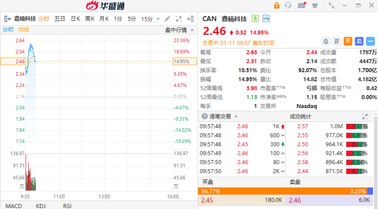 华盛资讯1月11日消息,美股早盘,三大股指翻绿,截至发稿,道指跌0.2%,标普500指数跌0.12%,纳斯达克综合指数跌0.01%。