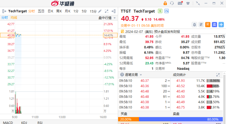 美国IT专业网站TechTarget涨超14%,消息面上,TechTarget同意与总部位于伦敦的活动组织机构Informa的数字业务合并,以扩大其投资组合并使收入来源多样化。声明称,合并后的公司预计将在20多个国家拥有8,600多家客户,并可能将TechTarget目前的可寻址市场扩大10倍以上。