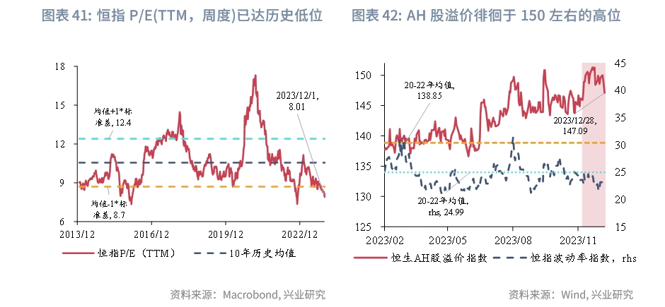 步入2024年,海外流动性趋向宽松为大概率事件,但降息预期可能随美国基本面及通胀数据再度反复。后续看,市场对内地及香港基本面复苏的预期仍偏弱、风险偏好短期维持较低水平,对比近年年初的港股行情,2024年初资金或倾向于循序渐进、等待经济修复路径更为明确的时机再入场,3月的内地两会及企业年报公布前后料成为港股走势反转的关键时点,AH股溢价有望于第二季度后回落。