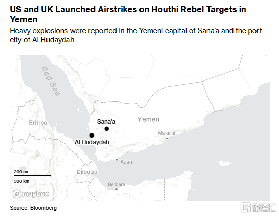 当地时间周四,为回应胡塞武装的袭击,美国和英国从空中和海上对该组织的军事目标发动打击。这次空袭是自2016年以来首次发生在也门领土的空袭。