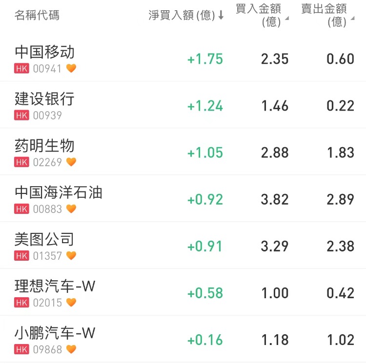 南下资金今日净买入14.68亿港元。其中港股通(沪)净买入8.75亿港元,港股通(深)净买入5.93亿港元。