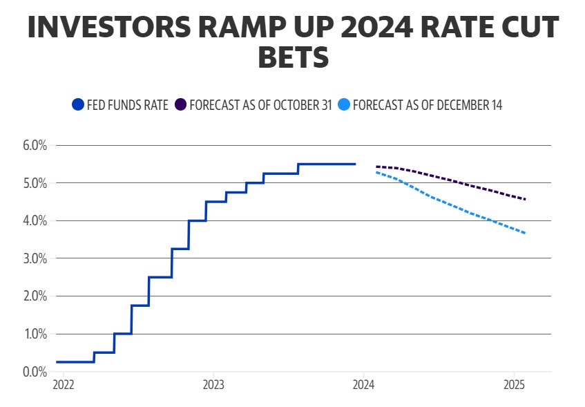 巴克莱的经济学家们还认为,利率的发展速度可能将比市场预期的要“缓慢得多”——米勒和他的团队预计,到2024年底,利率将下降1%,市场预计降息幅度将接近1.5%。当前联邦基金利率处于5.25%-5.50%的区间。