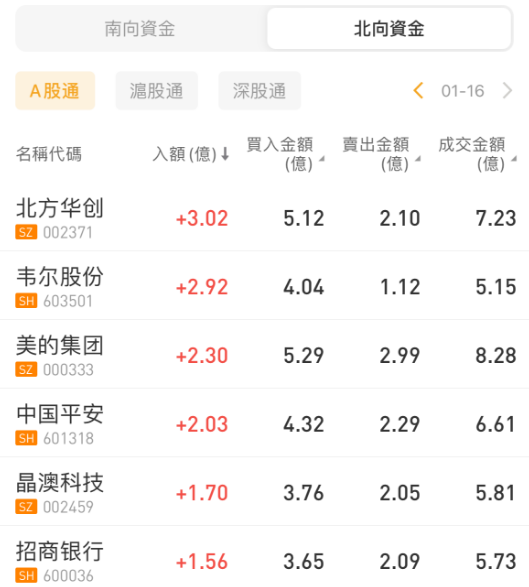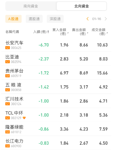北上资金今日净卖出A股41.33亿元。北方华创、韦尔股份分别获净买入3.02亿元、2.92亿元。长安汽车净卖出额居首,金额为6.70亿元。
