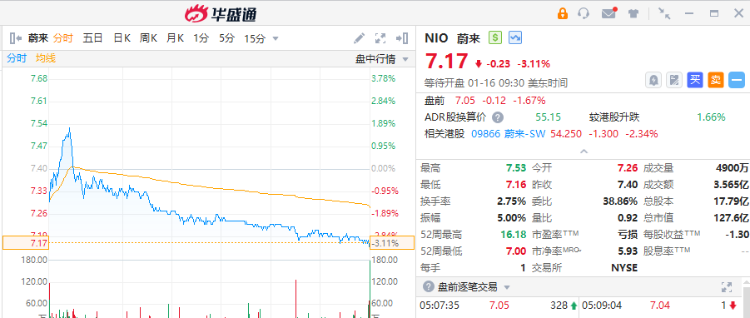 但随后蔚来的此轮行情止步,并在1月1日披露2023年12月及全年交付量后,股价加速下跌。截至1月16日,蔚来港股盘中股价已跌至最低55.05港元,半月跌幅达到25.8%,回吐了自去年12月以来的全部涨幅。