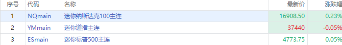 华盛资讯1月18日消息,三大期指盘前涨跌不一,截至发稿,纳指期货 $NQmain 涨0.23%,标普500指数期货 $ESmain 涨0.05%,道指期货 $YMmain 跌0.05%。ETF方面,3倍做多半导体-Direxion $SOXL 盘前涨超3%。