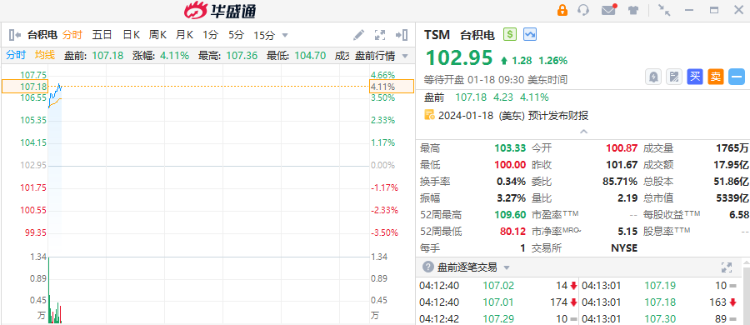 台积电 $TSM 盘前涨超4%,Q4营收为新台币6255.29亿元,同比基本持平,净利润为新台币 2387.12亿元,同比下滑19.3%,但均超预期。