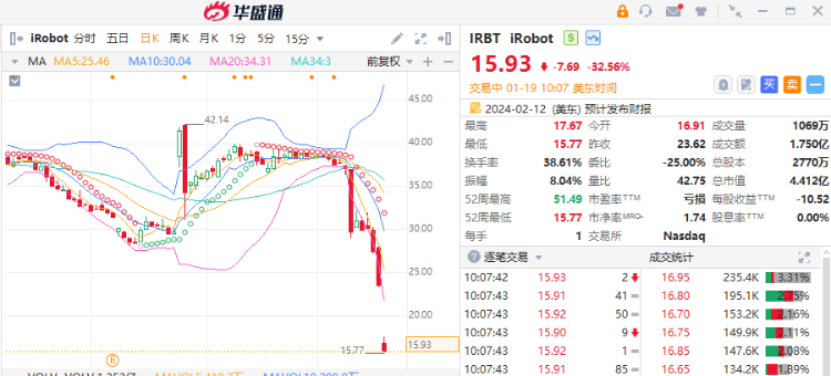 机器人吸尘器制造商iRobot $IRBT 大跌超32%,消息称亚马逊以14亿美元收购的计划预计将遭到欧盟反垄断监管机构的阻挠,原因是担心该交易将损害其他制造商的利益。