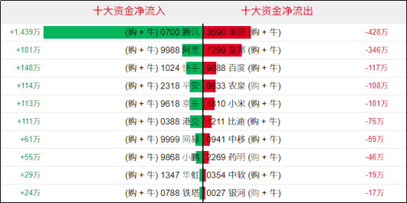 好仓(认购证及牛证)方面,上周五腾讯、阿里相关好仓单日分别录得1437万港元、181万港元资金净流入;相反,美团、友邦相关好仓单日分别录得428万港元、346万港元资金净流出。