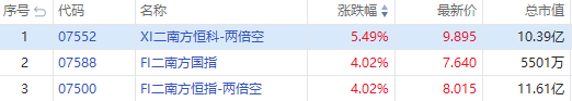 另一个热门标的,两倍做空恒生科技指数 $07552.HK 现涨超5%,月内涨超50%