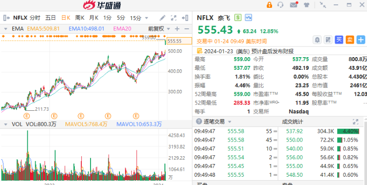 奈飞股价再周三暴涨13%。该股在2023年已经累计上涨了65%,今年年初至今微涨1.09%。