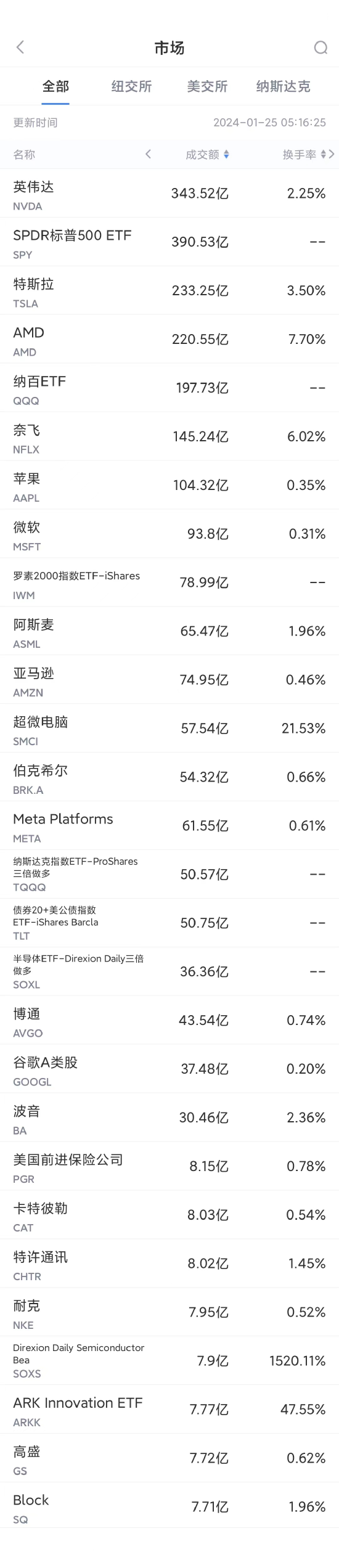第2名特斯拉收跌0.63%,成交233.25亿美元。特斯拉周三美国股市收盘后发布了2023年第四季度的财报,营收略逊预期,因今年销售增速或逊于去年。