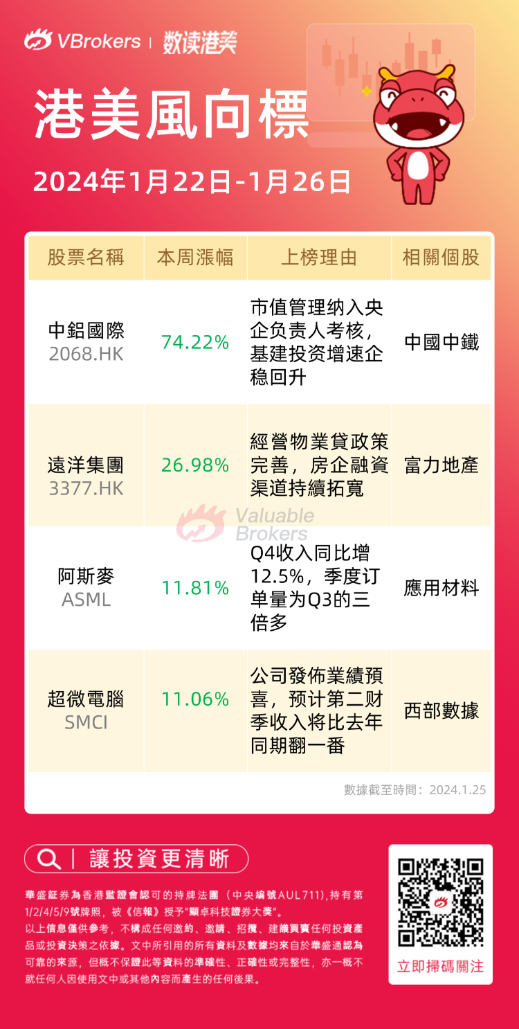 港美风向标 | 中铝国际周涨74%;AI持续爆火,超微电脑周涨11%