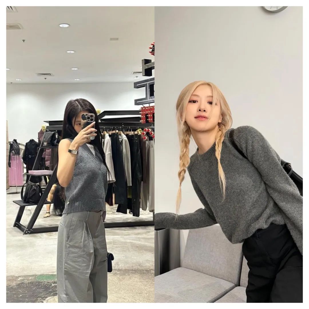 韩国女团Blackpink的成员Rosé和Jennie在Instagram上分享了自己的灰色系穿搭,灰色针织衫和坎肩成了凸显青春的利器。