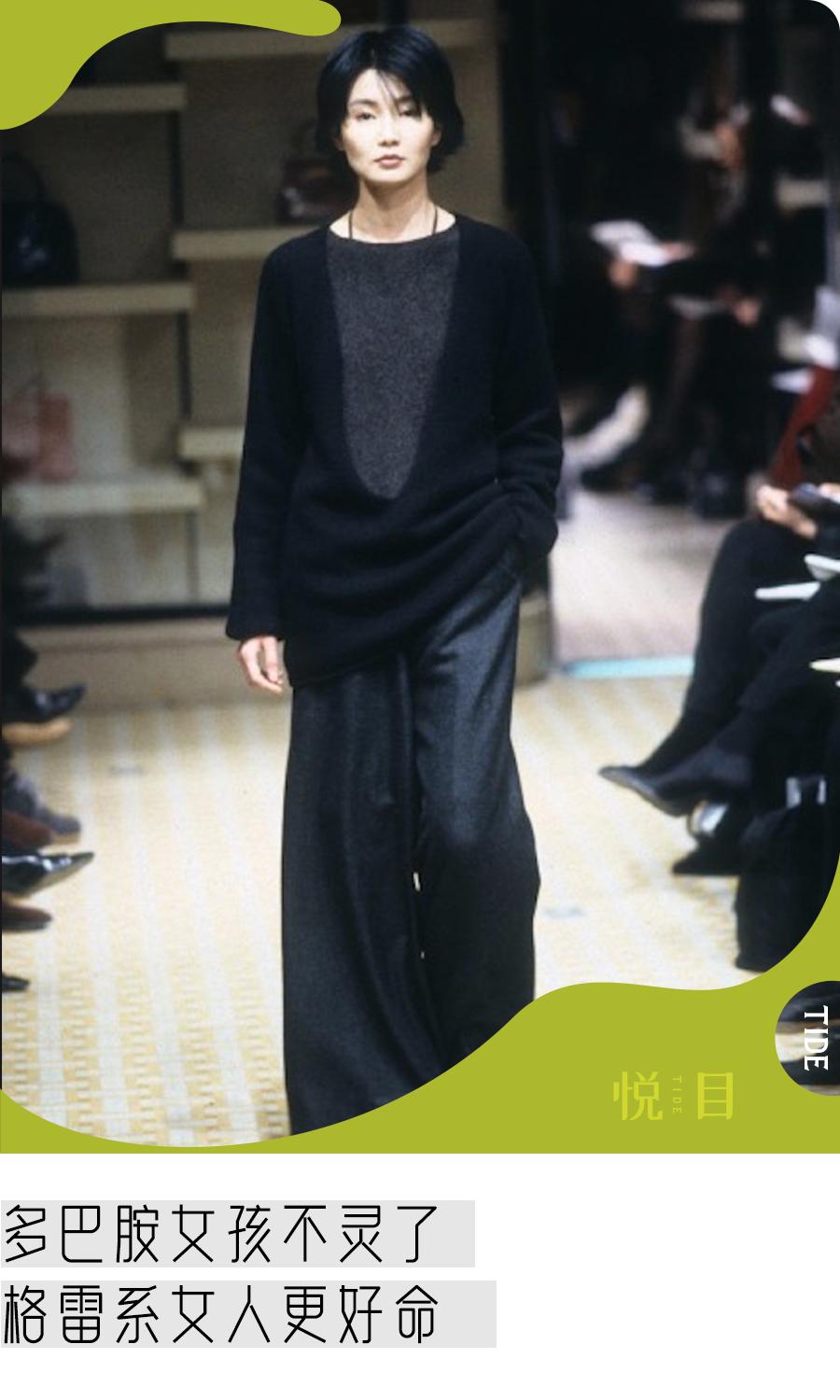 这种内核最好的诠释,是1998年张曼玉为爱马仕走秀时身着的那套All Grey。这套穿搭通体深灰,柔软的针织没有任何棱角,但是依旧穿得冷清笃定、气场强大。