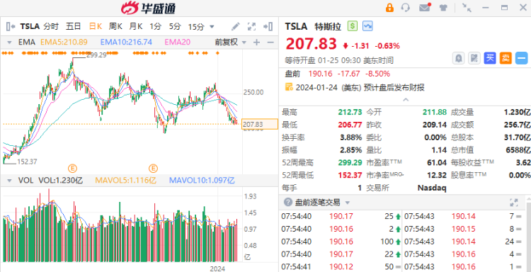 1、特斯拉绩后大跌8%!Q4业绩不及预期,未公布今年交付目标但警告增速放缓