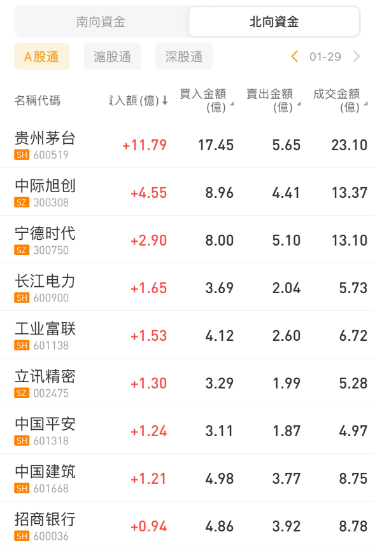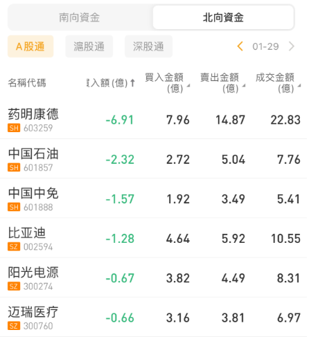 北向资金今日净卖出5.92亿元。贵州茅台、中际旭创分别获净买入11.79亿元、4.55亿元。药明康德净卖出额居首,金额为6.91亿元。