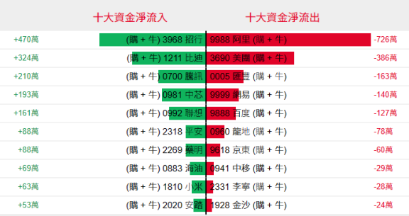 好仓(认购证及牛证)方面,周一招行、比迪相关好仓单日获470万港元、324万港元资金净流入。阿里相关好仓单日遭726万港元资金净流出。