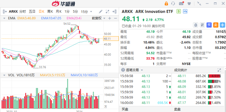 目前,特斯拉分别为木头姐的旗舰基金ARK Innovation ETF(代码 ARKK)和 ARK Next Generation Internet ETF(ARKW)的第三大重仓股和第六大重仓股。