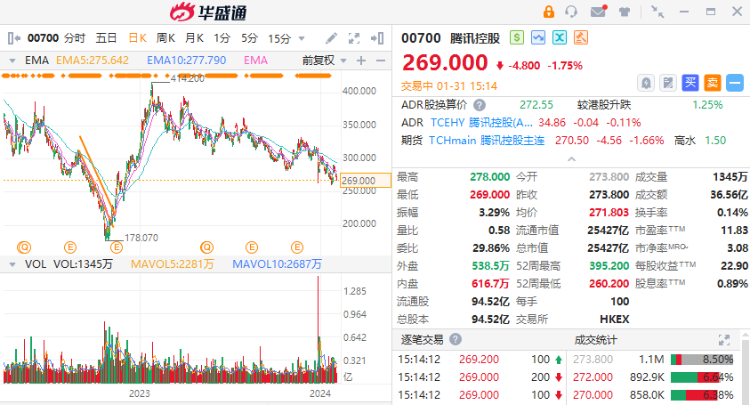 北水连续七个交易日抛售腾讯近40亿港元,看淡可留意沽$22484.HK