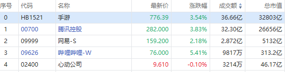 2月2日讯,港股游戏股早盘集体高开,截至发稿,哔哩哔哩-W(09626)涨5.83%,报76.3港元;IGG(00799)涨4.01%,报2.85港元;腾讯(00700)涨3.98%,报282.4港元;网易-S(09999)涨3.53%,报161.3港元。