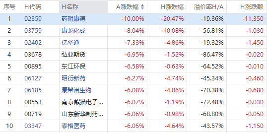 药明康德A股跌停,H股现跌20.47%;康龙化成A股跌8.04%,H股跌10.08%;亿华通券A股跌7.33%,H股跌4.86%。