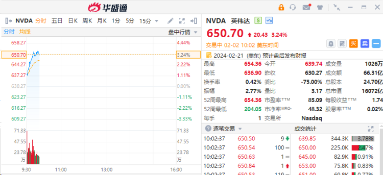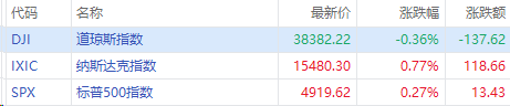 华盛资讯2月2日消息,美股三大指数走势不一,纳指涨0.77%,标普500指数涨0.27%,道指跌0.36%。美国1月非农就业数据远超预期,显示劳动力市场仍然紧张,降低了市场对美联储降息的预期。