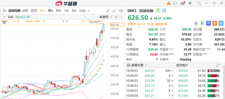 超微电脑涨超8%,续创历史新高。1月19日以来超微电脑持续上涨,累涨超100%。