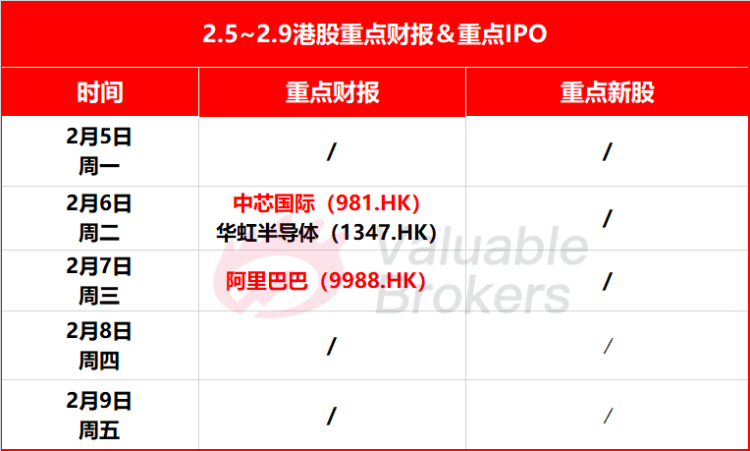 财报方面,重点关注下周二披露的中芯国际;此外,下周三还披露阿里巴巴-SW财报,广发预计公司FY24Q3收入同比上升3.7%至2569.4亿元,调整后EBITA 为572.9 亿元,利润率为22.3%。