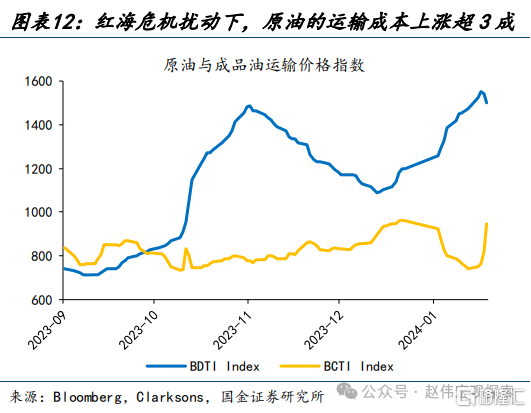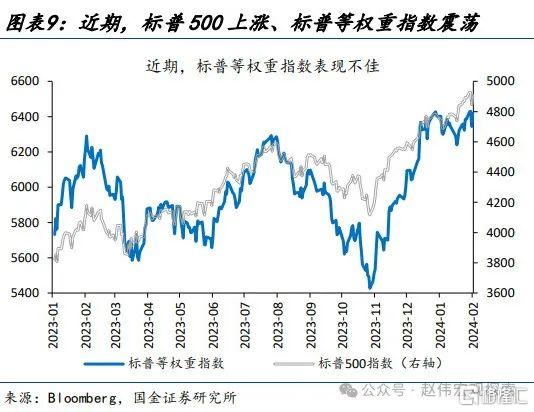 美欧权益资产的优异表现,更多是龙头板块业绩预期上修的驱动;商品资产的反弹,或缘于红海冲突的扰动。权益资产方面,美欧日表现有分化、但大盘股、成长股均相对占优,美国标普500相对罗素2000超涨5.5%、欧洲斯托克50相对斯托克600超涨1.4%、日经225相对东证指数也超涨了0.6%,头部权重股的预期改善,是市场上行的主要驱动。商品资产方面,铜价小幅上涨0.5%,经济的韧性有支撑、但相对有限,油价大幅反弹5.9%或更多缘于红海冲突下运输成本的上升、以及沙特增产不及预期的供给端扰动。