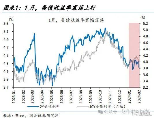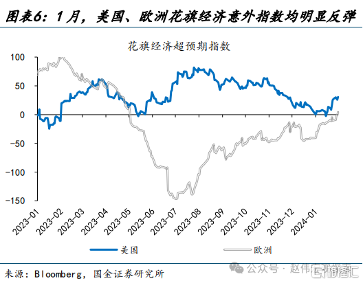 1)1月美债收益率震荡上行,但分母端冲击无碍风险资产上涨,美欧日股市相继创下新高,原油等商品也有反弹。美欧权益资产的优异表现,源自龙头板块业绩预期上修的驱动;商品资产的反弹,或缘于红海冲突的扰动。