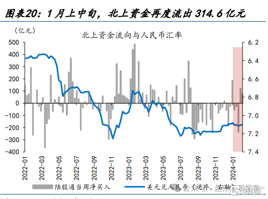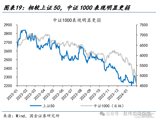 政策不及预期、经济担忧仍存是市场情绪走弱的主要原因,而“雪球”敲入、海外QDII基金疯抢等事件,对国内市场也有扰动。第一,1月上中旬,市场一度对MLF与LPR的调降抱有一定期待,降准落地前、降息期待的落空一度对市场情绪有一定影响。第二,从粉磨开工率、沥青开工率等高频指标来看,春节临近、政策落地节奏或受“停工”扰动,相关链条产需表现或出现暂时性回落。第三,1月22日,中证500和中证1000“雪球”新增敲入估计分别为513.2亿元和288.8亿元,敲入风险的释放,导致中小盘股票表现更弱。第四,外盘屡创新高,也加速了部分资金外流,QDII基金溢价高涨,北上资金再度流出。