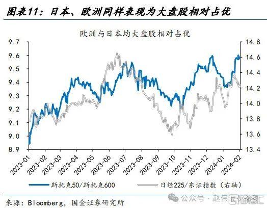 美欧权益资产的优异表现,源自龙头板块业绩预期上修的驱动;商品资产的反弹,或缘于红海冲突的扰动。权益方面,美欧日大盘股、成长股均相对占优,头部权重股的预期改善,是市场上行的主要驱动。商品方面,经济韧性的支撑相对有限、铜价仅小幅上涨0.5%,油价大涨或更多缘于红海冲突下运输成本上升、沙特增产不及预期的供给端扰动。