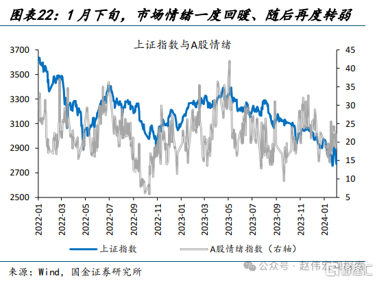 2)1月上中旬,政策不及预期、经济担忧仍存是国内市场情绪走弱的主因,而雪球敲入等事件也有扰动。1月下旬,降准超预期落地一度提振市场情绪,但对经济和市场风险的担忧下,市场情绪再度回落。