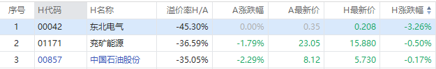 兖矿能源A股跌1.79%,H股现跌0.5%;中国石油股份A股跌2.29%,H股跌0.17%。