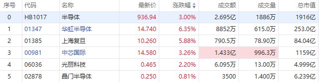 2月8日,港股半导体概念股集体上扬,截至发稿,华虹半导体涨超6%,上海复旦涨超5%,中芯国际涨超3%,晶门半导体跟涨。