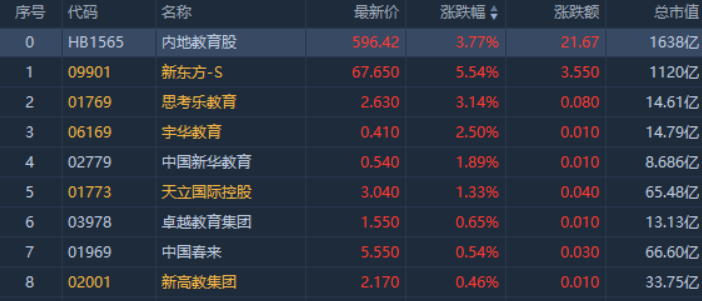 2月9日,港股教育股逆市走强,截至发稿,新东方-S涨超5%,思考乐教育涨超3%,宇华教育涨超2%,中国新华教育、天立国际控股涨超1%。
