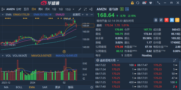 英伟达市值超越亚马逊成为美股市值第四大公司,离谷歌市值仅一步之遥。英伟达股价上次超越亚马逊还是20多年前,当时两家公司的市值都仅有60亿美元左右。英伟达股价的强劲上涨反映了市场对AI芯片的追捧势头依然猛烈。英伟达将于2月21日公布财报,分析师预计该公司销售额将增长118%至590亿美元。亚马逊近期股价的下滑主要受到云服务激烈竞争的影响。分析师预估,微软云的增长速度明显快于亚马逊AWS。