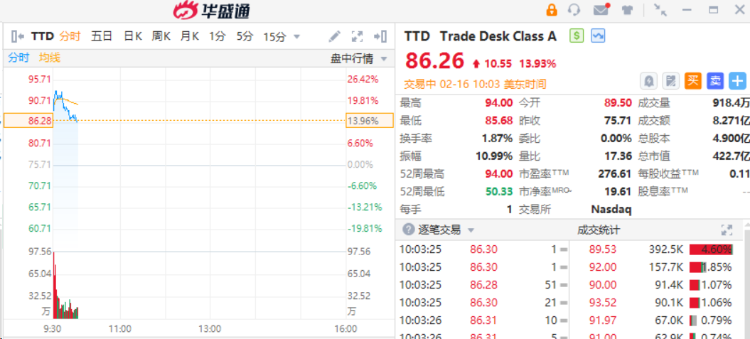 TTD $TTD 大涨13%,Q1指引超预期、公司追加6.5亿美元回购额度。