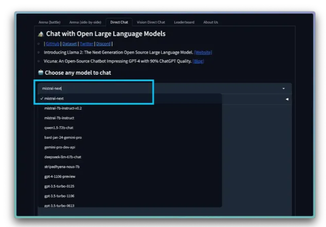 在ChatBot Arena平台中发现了一个名为 Mistral-Next 的模型,暗示其即将发布。初步测试表明,它至少是一个可靠的模型。