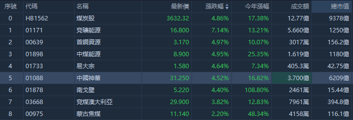 煤炭股逆势高涨,截止发稿,兖矿能源涨超7%,首钢资源、中煤能源涨近5%,易大宗、中国神华、南戈壁涨超4%,兖煤澳大利亚涨超3%。