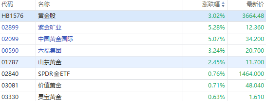 黄金股尾盘多数上涨,紫金矿业、中国黄金国际涨超5%,六福集团涨超3%,山东黄金涨超2%。