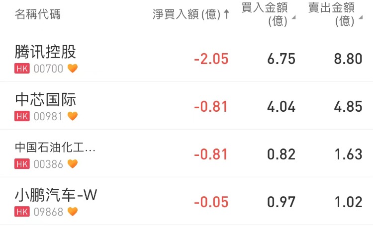 南向资金净买入中海油,沽出腾讯控股