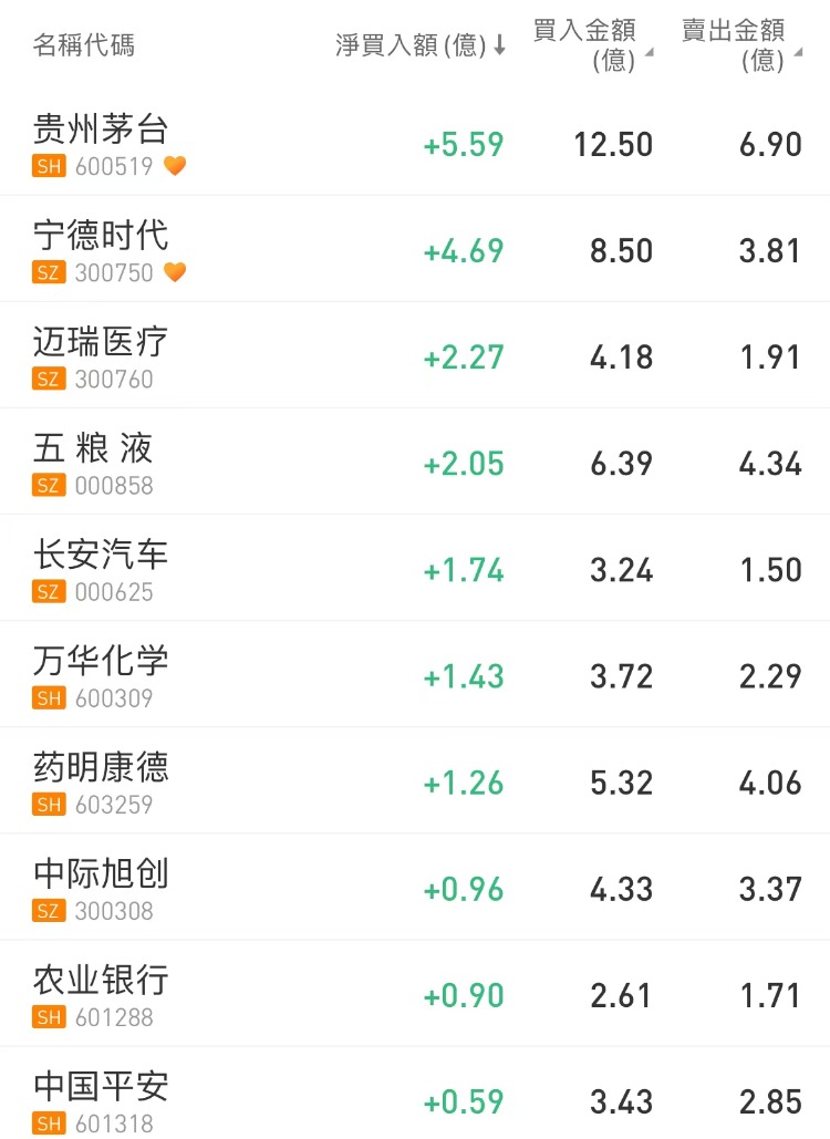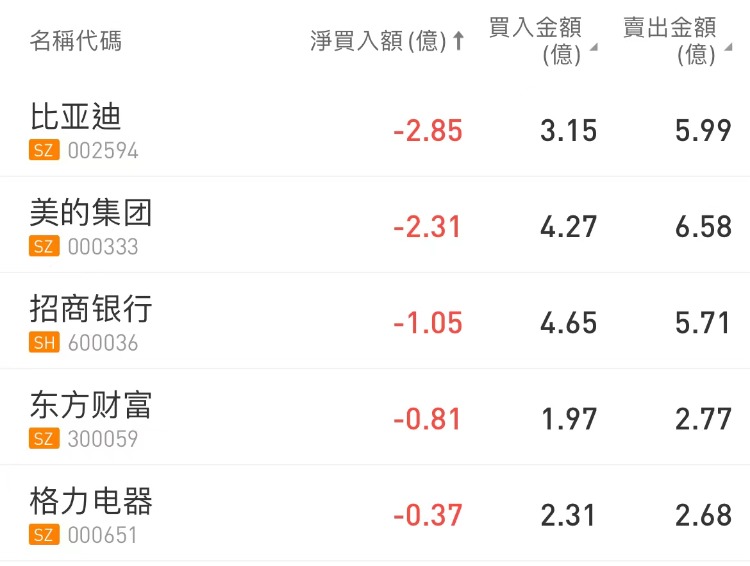 北向资金贵州茅台买入贵州茅台,沽出比亚迪