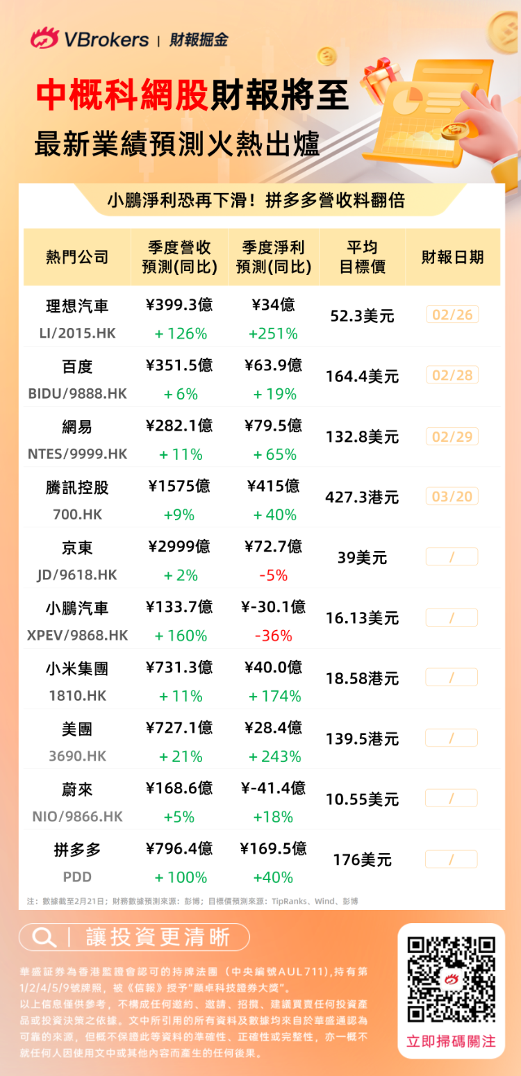 编者按:市场预计理想汽车Q4净利同比大增251%;拼多多营收料翻倍至796.4亿人民币;Q4财报季打响,海外资管巨头持仓曝光,中概股龙头频获加仓>>