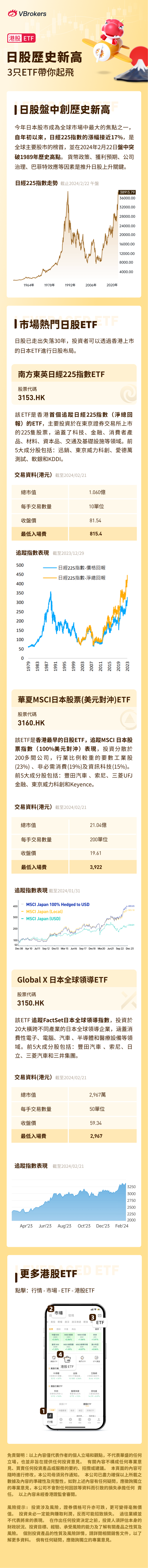 ETF:南方日经225 $03153.HK ,华夏日股对冲 $03160.HK ,GX日本全球领导 $03150.HK ,iShares安硕MSCI日本ETF $EWJ ,WisdomTree日本对冲股票基金 $DXJ