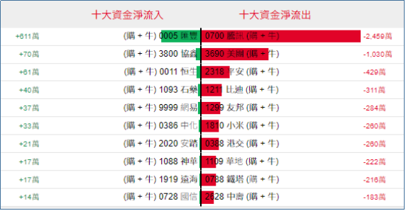 好仓(认购证及牛证)方面,周三汇丰相关好仓单日获得611万港元资金净流入;腾讯、美团、平安相关淡仓单日分别获得2459万港元、1030万港元、429万港元资金净流出。