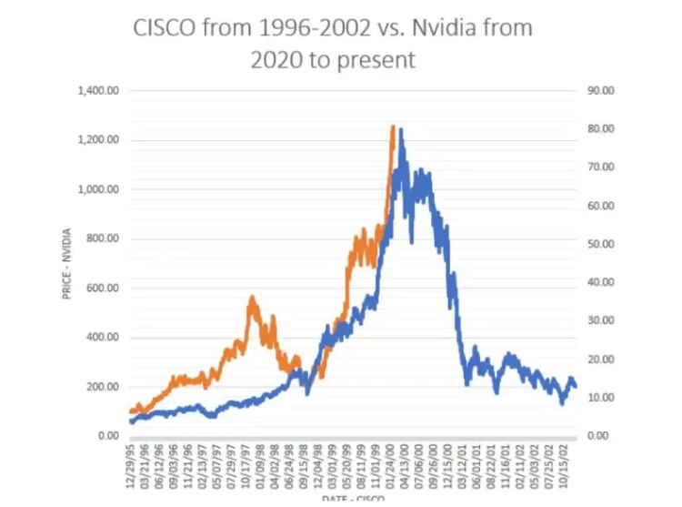 思科的巅峰时期已经过去了20多年,该股自那以后再也没有回到当初的市值高点。英伟达会不会步思科的后尘还有待观察。
