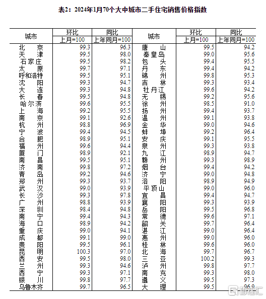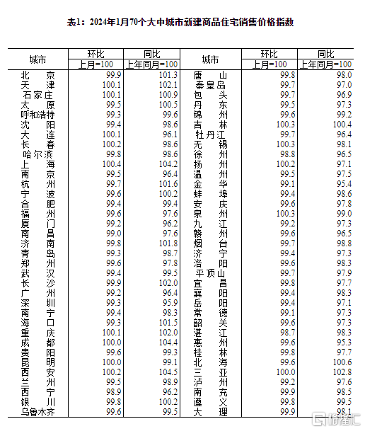 2月23日,国家统计局公布2024年1月份70个大中城市商品住宅销售价格变动情况。